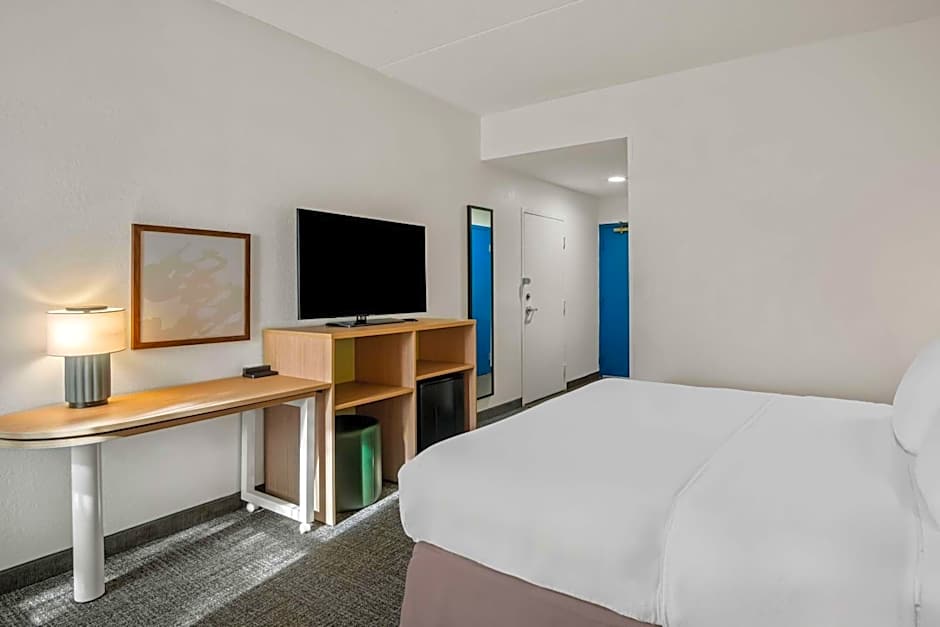 The suite's kitchenette, which features a refrigerator and a microwave, is available for cooking and storing food. The suite provides air conditioning, a tea and coffee maker, as well as a private bathroom featuring a bath and a shower.